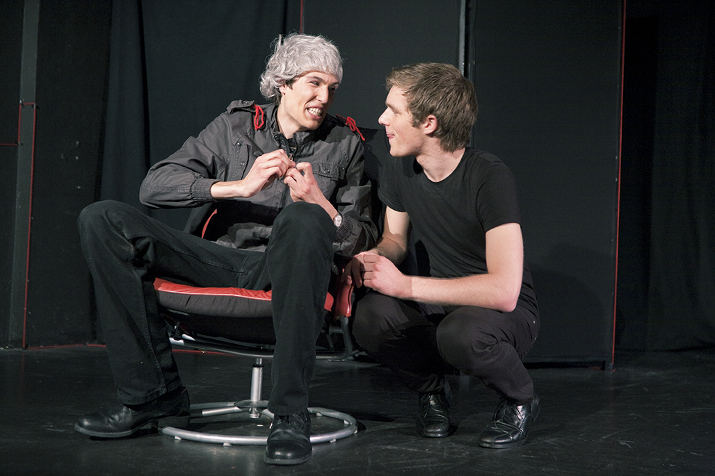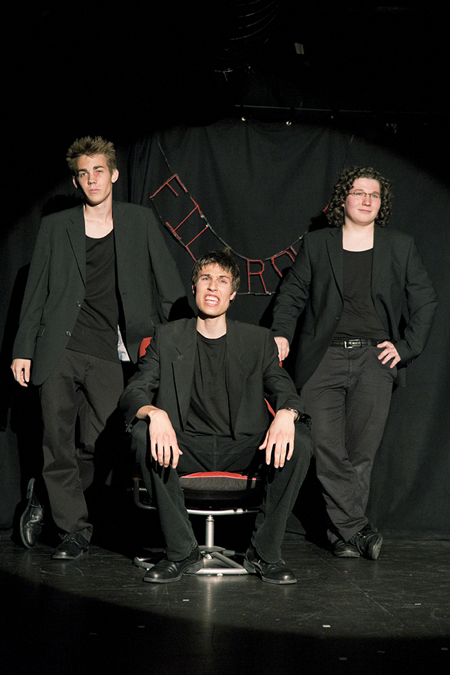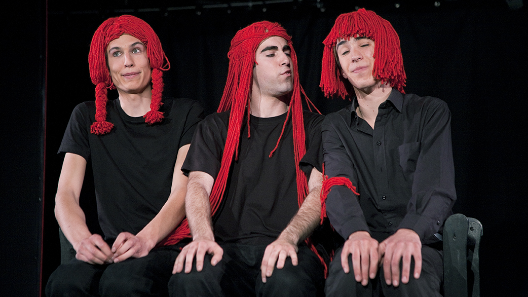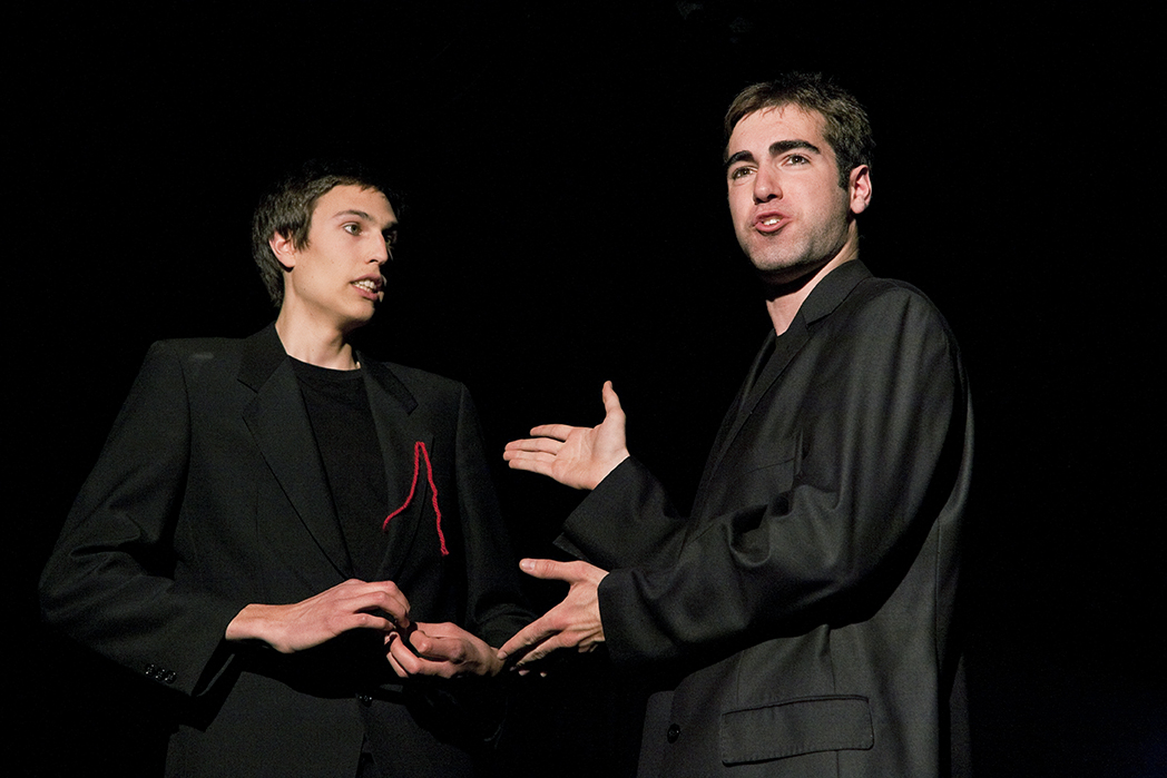 12 histoires humoristiques dont une chorégraphie, une scène mimée et bruitée, et une musique inspirée de chant populaire suisse. Une première création très libre pour 6 comédiens alors âgés de moins de 20 ans.