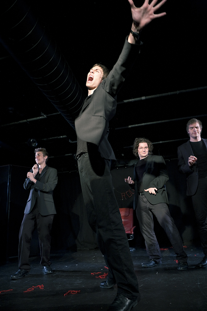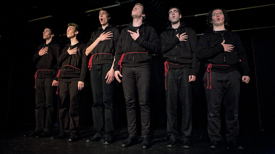 Ecriture, scénographie, jeu et mise en scène : Tiago Branquino, Boris Degex, David Langelaan, Nicola Moriggi, Tibor Ockenfels et Nicolas Rohrer